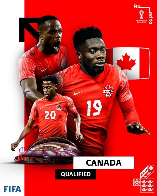 加拿大成为第20支晋级世界杯的球队,本月底还将确定9个席位